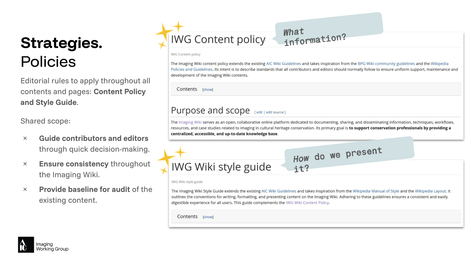 So, the IWG Content Policy and the IWG Style Guide were born to answer two fundamental questions: